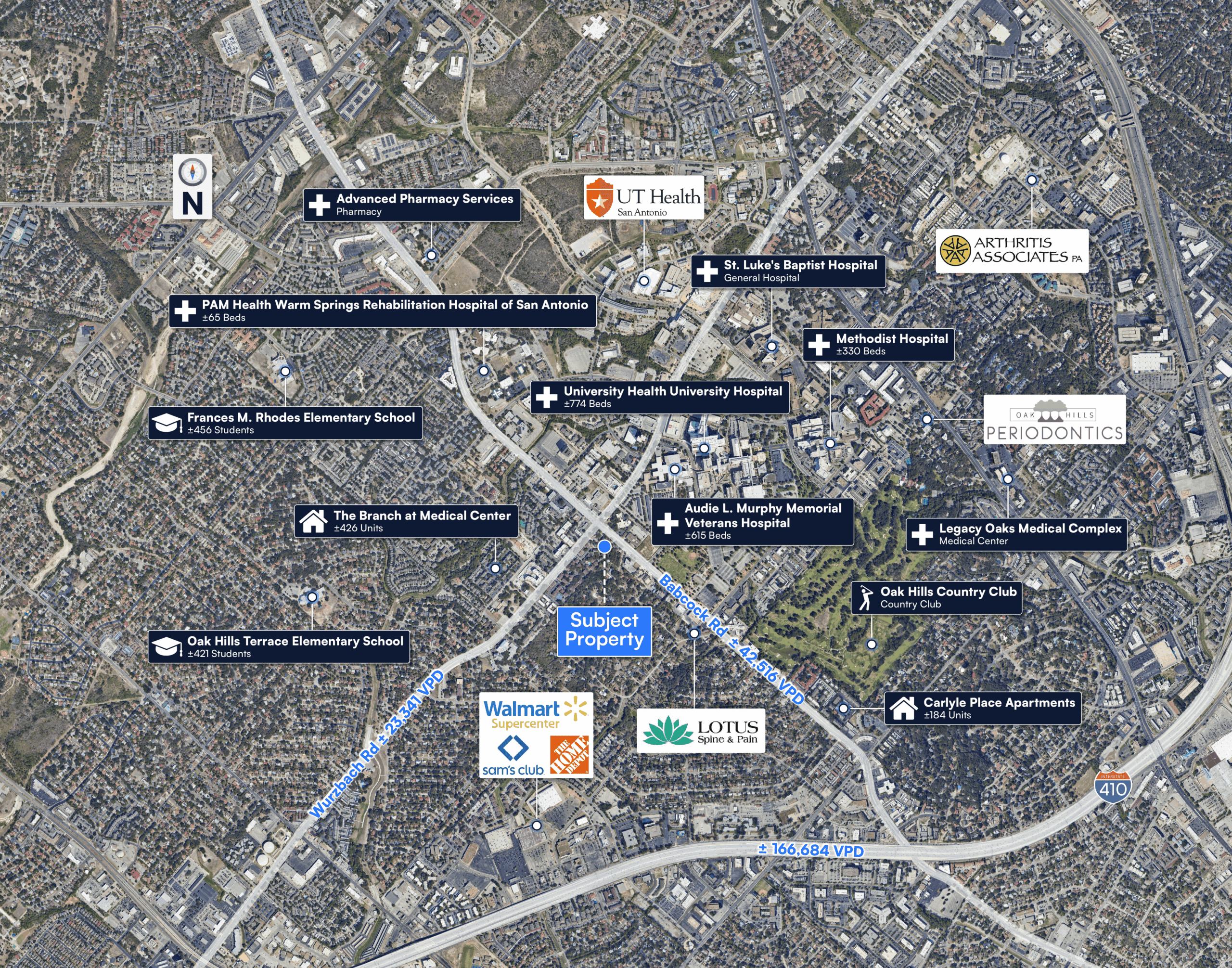 - Proximate to Major Healthcare Institutions – Located within one mile of seven hospital campuses, comprising a total of 4,857 beds, which enhances referral potential and operational synergy.