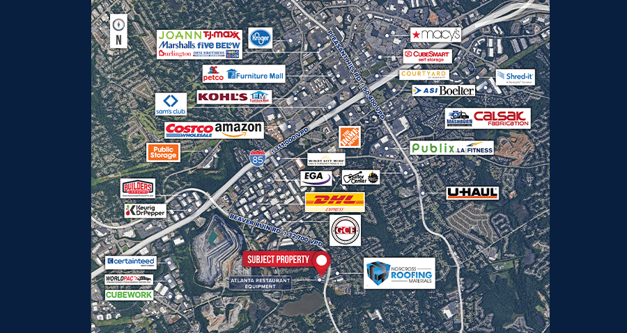 EXCELLENT LOCATION – Strategically located in the thriving community of Norcross, GA, the property enjoys excellent access to major transportation routes, including proximity to Peachtree Industrial Blvd and I-85. Notable industrial neighbors include Norcross Roofing Supply, Atlanta Restaurant Equipment, and Georgia Chemical