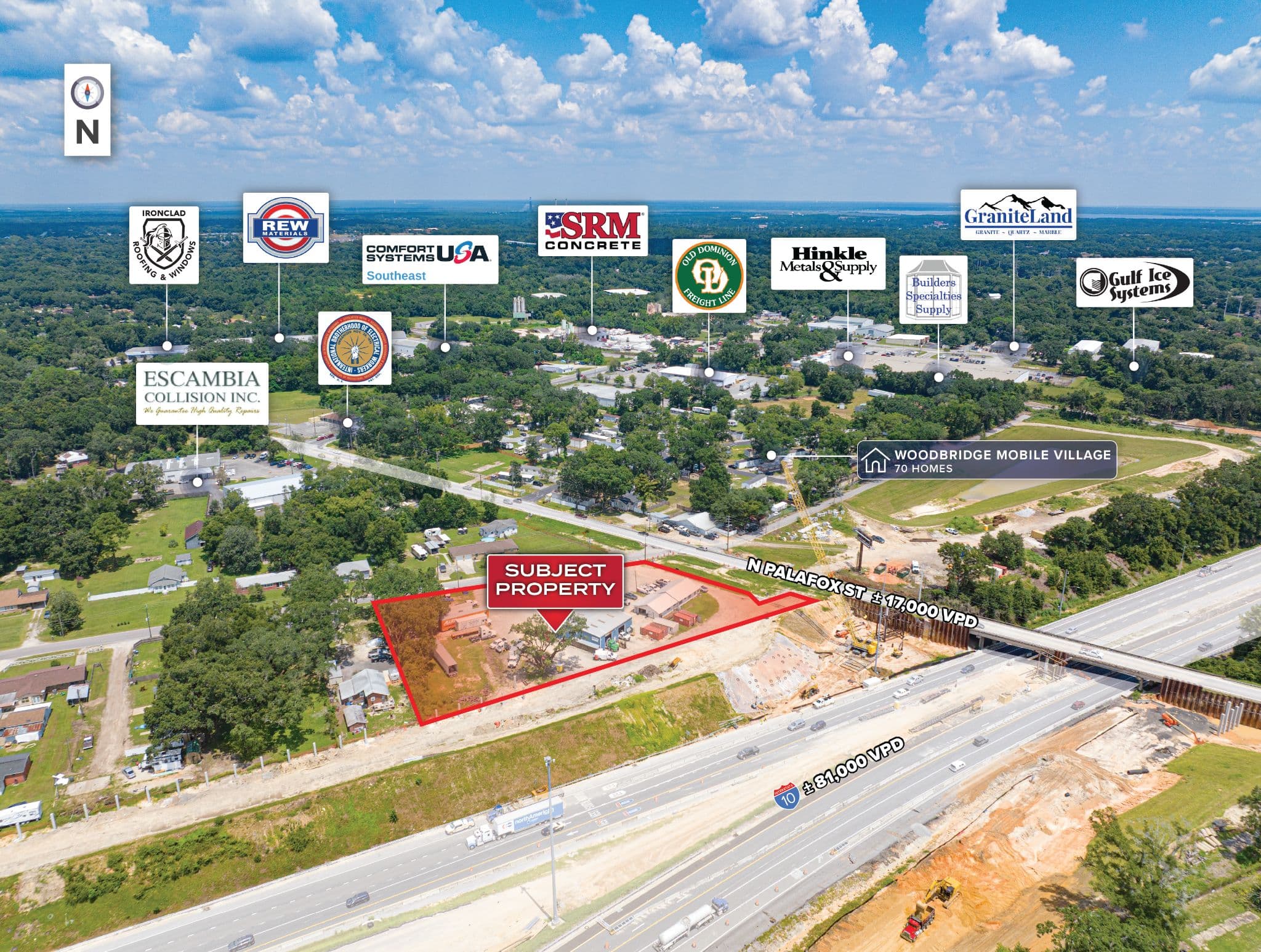 Strategic Growth Location – The property is situated at the corner of N Palafox St and Interstate-10, which is currently undergoing a major expansion to support the Pensacola MSA’s rapidly growing population and increasing traffic demand. This prime location is ideal for a truck service facility, offering unmatched visibility and accessibility for regional freight traffic.
