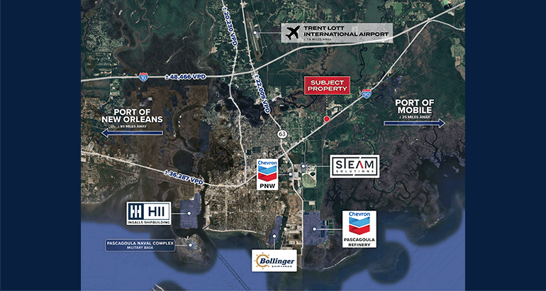 Strategically Located IOS Facility – This functional ±19,653 sq. ft. facility sits on ±3.38 acres of land (13.36% Building/Lot Coverage) allowing for ample outdoor storage opportunities (IOS) with direct access to U.S. Route 90 (Hwy 90). In addition to the subject facility’s strategic positioning along U.S. Route 90 (Hwy 90), the subject facility is also in very close proximity to Interstate 10 (I-10), which is the 4th longest interstate in the country stretching from Los Angeles, CA to Jacksonville, FL. The Port of Mobile is positioned just 30 miles NE from the site and other notable ports in close proximity include: The Port of South Louisiana, Port of New Orleans, Port of Baton Rouge, Port of Plaquemines, and the Port of Pascagoula, all of which rank amongst the top 25 largest U.S. ports by cargo tonnage.