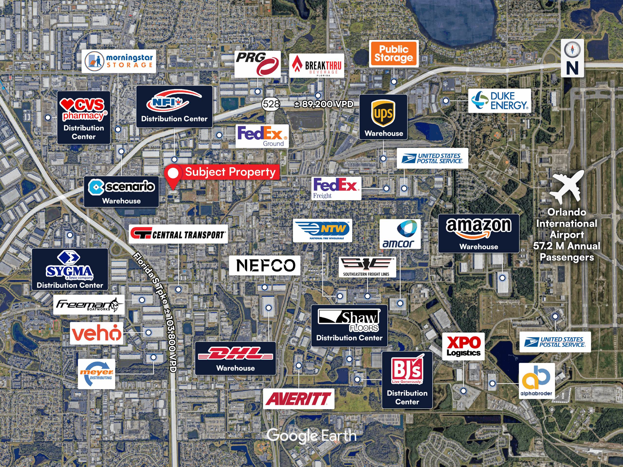 Infill South Orlando Industrial Asset: Located in a core infill industrial submarket near Orlando International Airport (MCO) with direct access to SR-528 (Beachline Expressway), Florida Turnpike, and major arterial corridors.