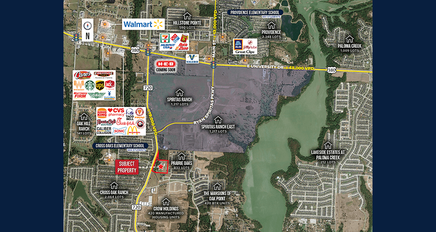 • Located at the entry/exit of Cross Oak Ranch (2,064 lots) & Prairie Oaks (833 lots)