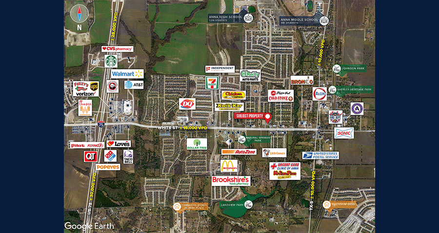 • Located along Anna’s Main Retail Corridor (W White St)