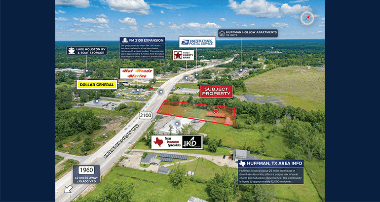PRIME FRONTAGE ON FM 2100: Features approximately 171 feet of direct frontage on FM 2110, enhancing exposure to steady vehicular traffic and offering excellent signage potential for future occupants or tenants.