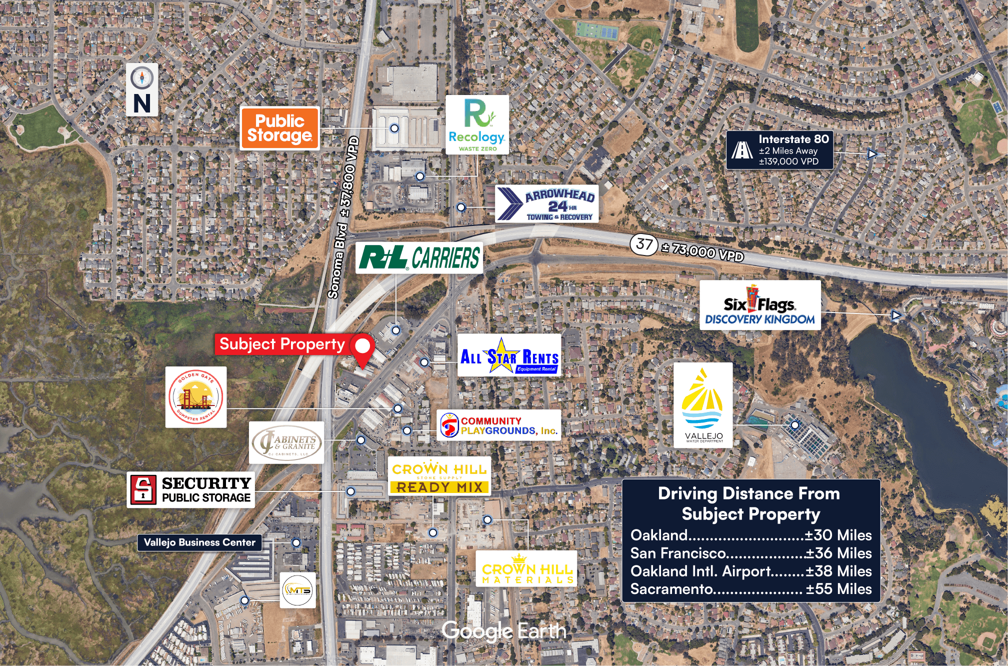 ±73,000 VPD along Highway 37 and ±37,800 VPD along Sonoma Boulevard