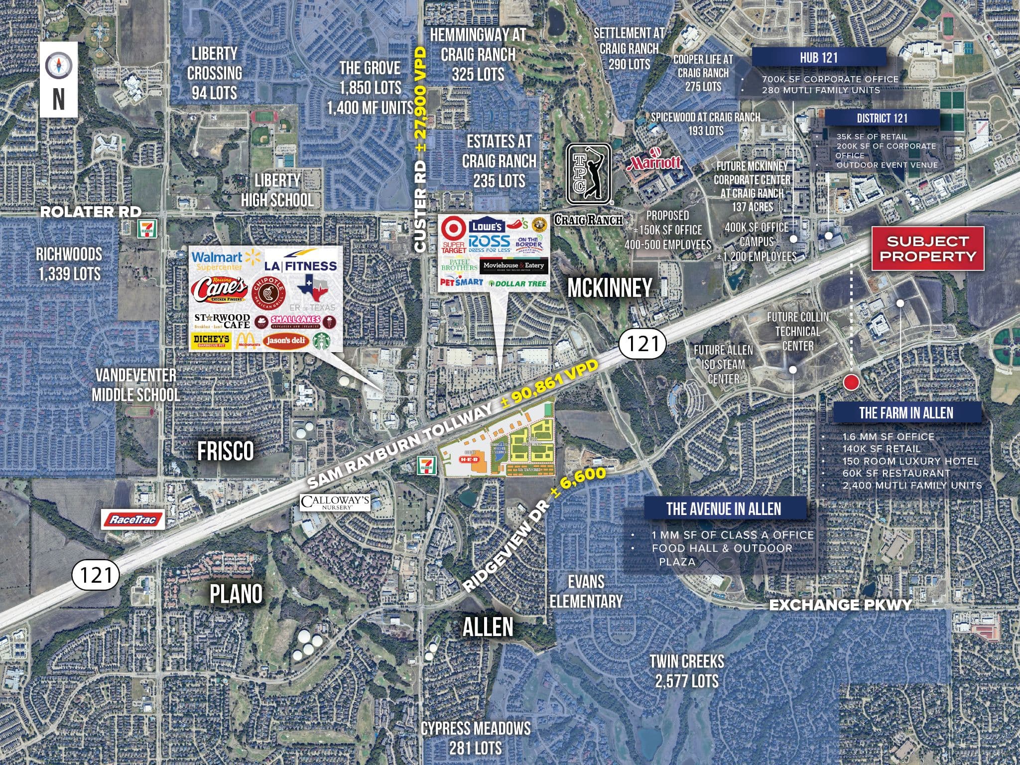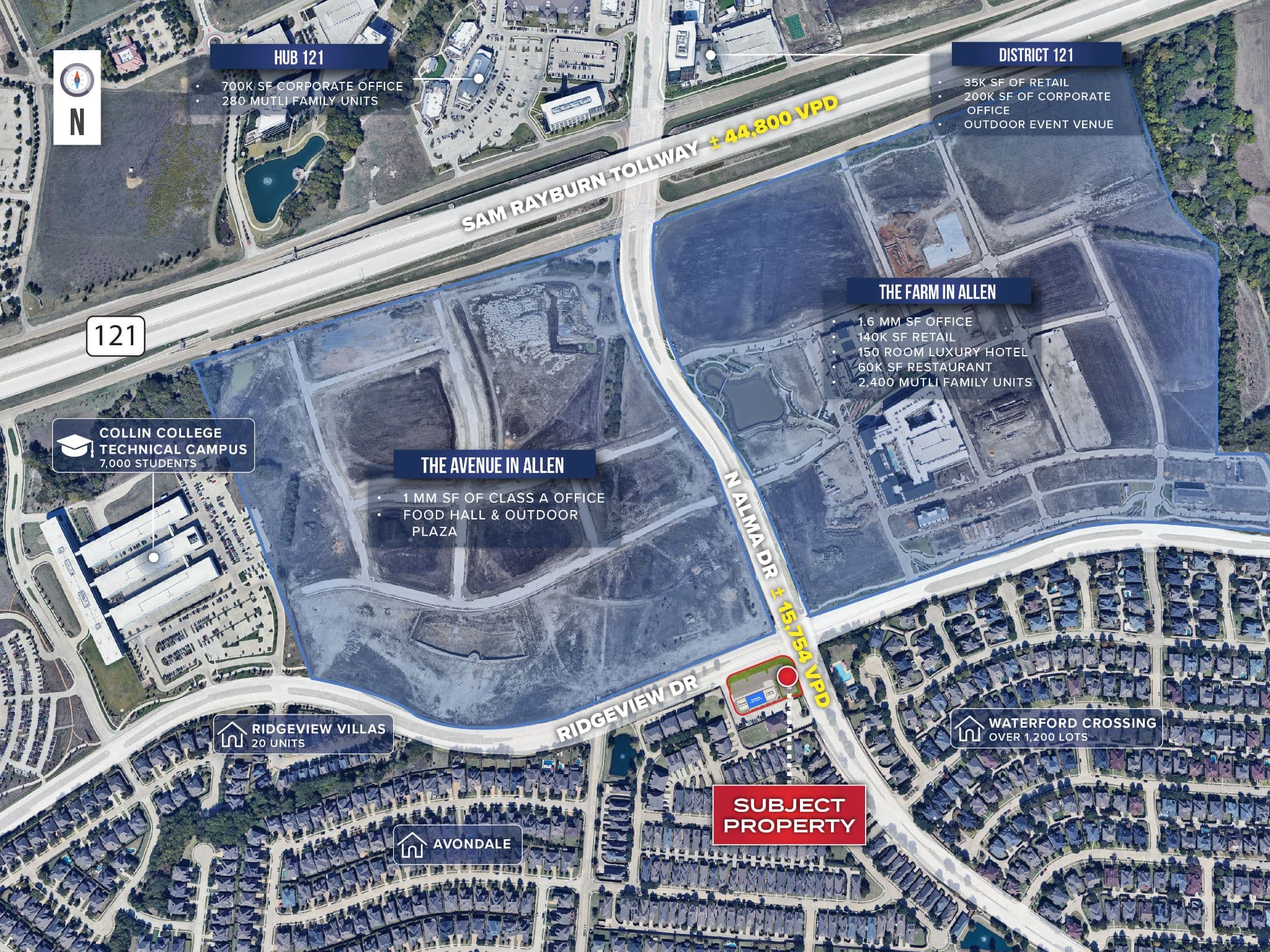• Within walking distance from multiple of North Texas’ most premier developments such as The Farm, District 121, HUB 121, and The Avenue.