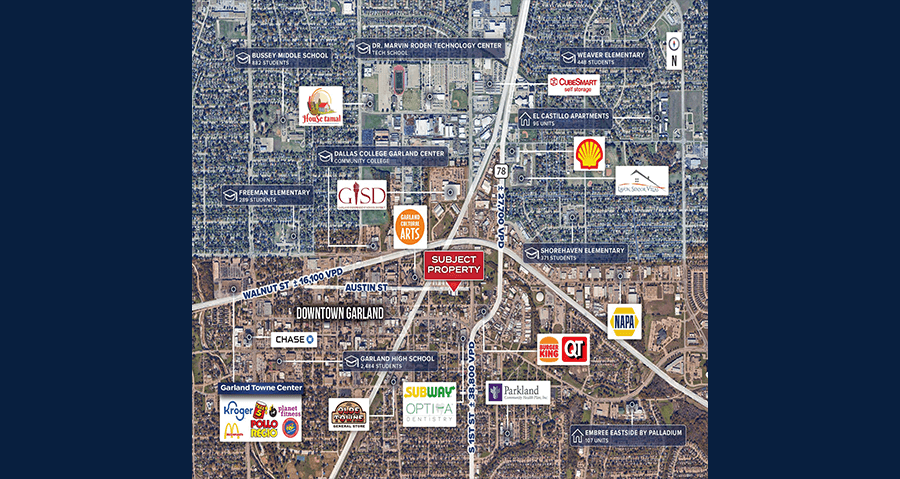 PRIME LOCATION – The property is located ±0.25 miles from Downtown Garland and is located just minutes from the heart of the Garland Industrial Submarket. The site also has easy