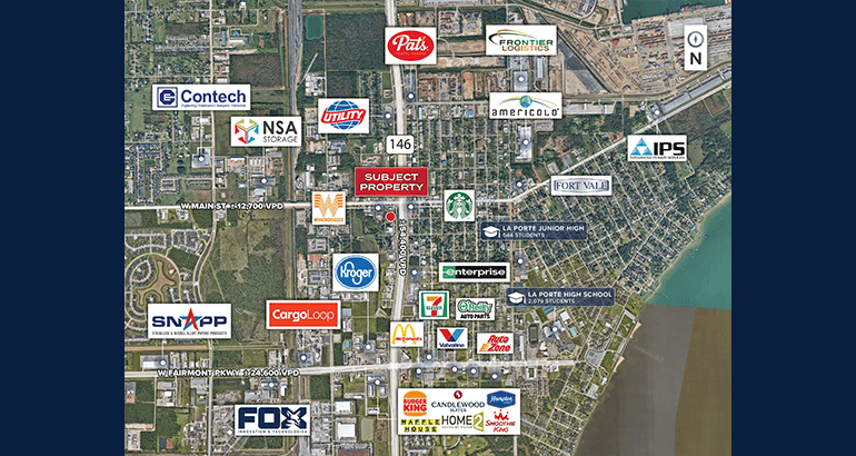 Prominent Frontage and Visibility: Approximately 295 feet of direct frontage along the Highway 146 feeder road, offering significant exposure near the signalized intersection of Main Street and Highway 146.