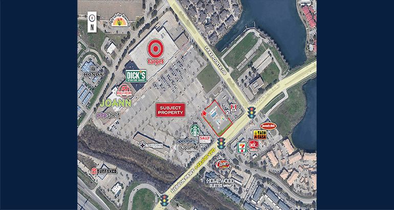 Great access and visibility at a high-traffic, regional intersection of I-35 and Hebron Parkway.