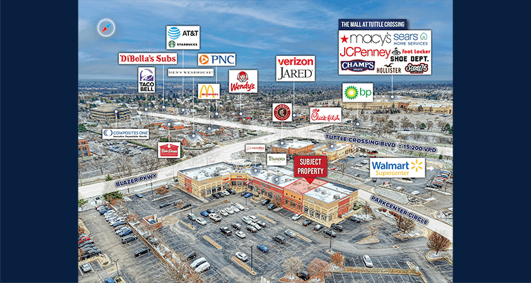6112 PARK CENTERCIRCLE6112 Parkcenter Circle is a ±2,048 SF vacant retail suite located off off Tuller Crossing Blvd, ±0.5 miles off of I-270. The site is surrounded by a variety of retailers and is directly adjacent to Panera Bread, Chipotle, Chick Fil A, and McDonald’s. The Dublin retail market boasts one of the lowest vacancy rates in the Columbus MSA at only 2.2% across ±2.2M square feet within a one mile radius of the property. This is a great opportunity for a variety of companies to position themselves in a high traffic, affluent market.