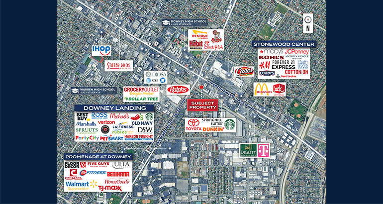 • Located at ground zero in the Downey trade area, with frontage on both Firestone Blvd (±41,470 VPD) and Lakewood Blvd (±36,000 VPD)