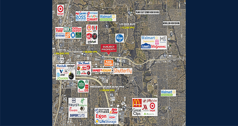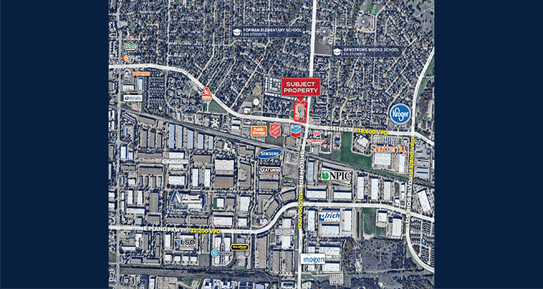 Frontage along the signalized intersection of Shiloh Rd & 14th St (±48,600 VPD) – Connects residents in East Plano to US 75 & President George Bush Turnpike