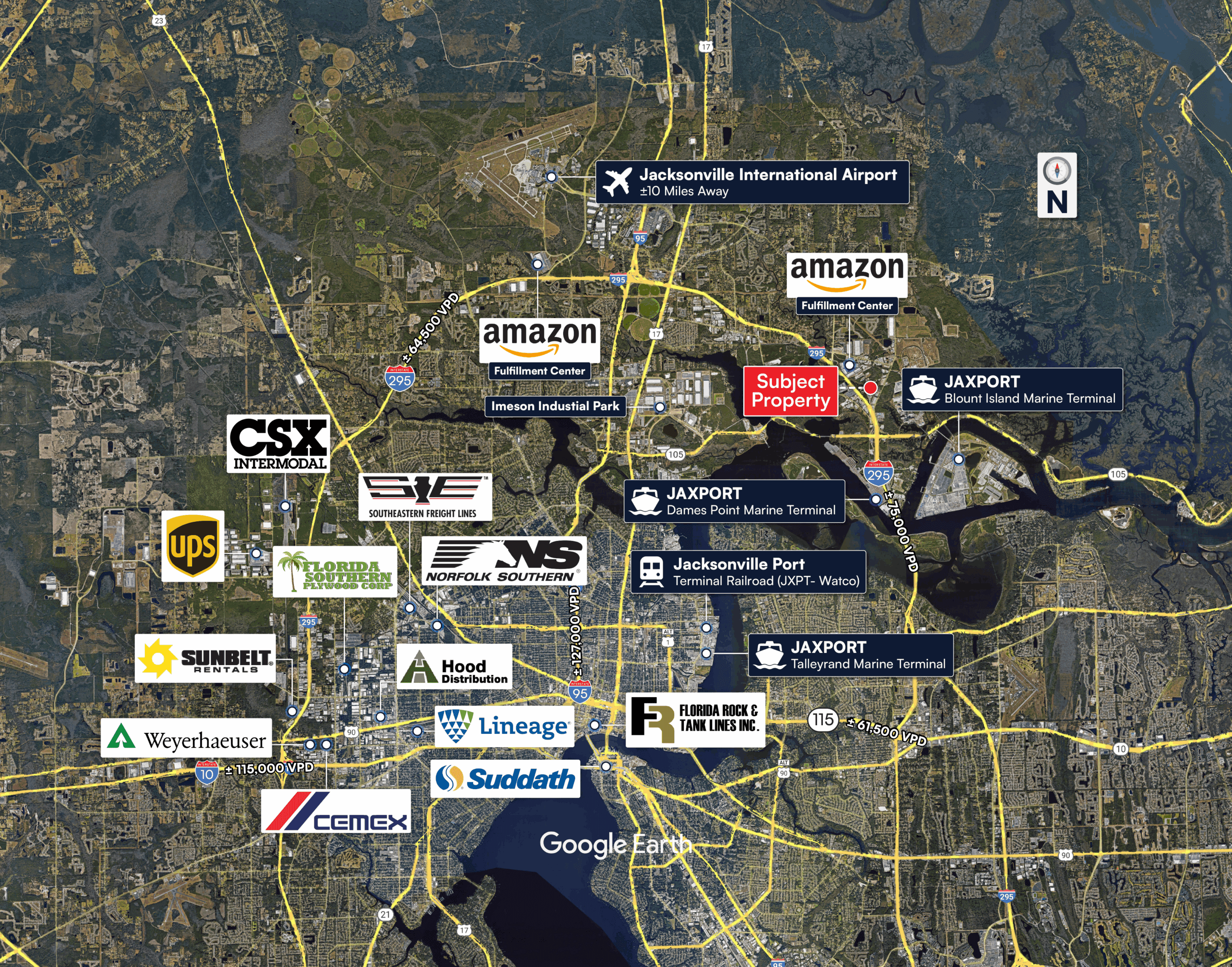 Located within close proximity to JAXPORT, the CSX ICTF, and the I-10 / I-95 / I-295 interstate network, the property offers a powerful combination of rail, port, and highway connectivity in a market with limited rail served IOS supply.