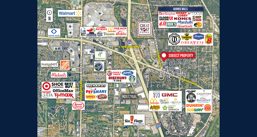 MAJOR TOURIST ATTRACTION DRAWThe subject property is centrally located, situated between the Gurnee Mills Mall, Six Flags Great America, and the Great Wolf Lodge, which are three of the most popular tourist attractions through the Midwest, providing a broad customer base mixed with densely populated neighborhoods.