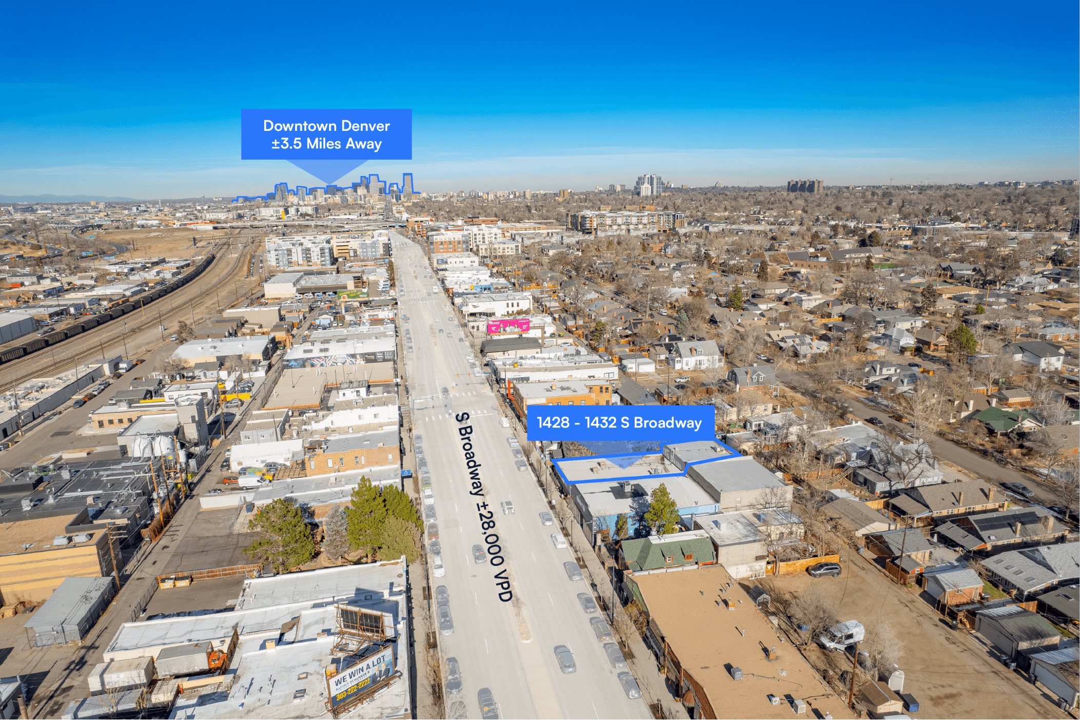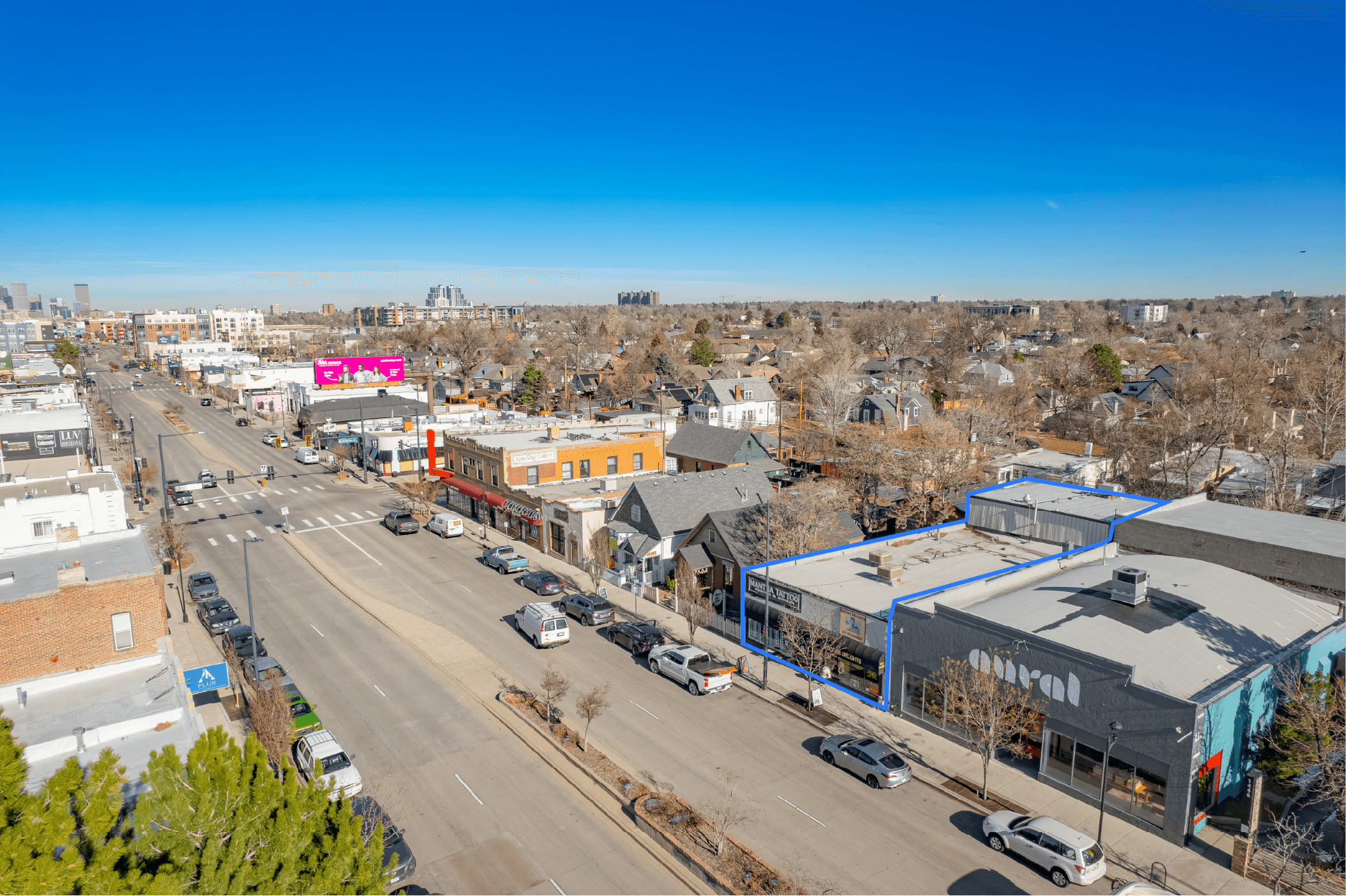 Superb Central Location On South Broadway providing direct exposure along one of Denver’s most heavily trafficked retail corridors, the property benefits from exceptional visibility, strong daily traffic counts, and sustained tenant demand.