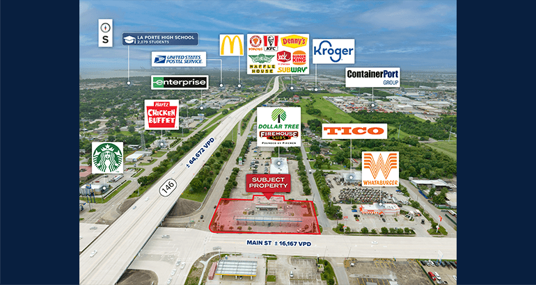 - Located at the hard corner 4-way signalized intersection along Texas State Highway 146 with outstanding visibility and ±80,839 vehicles per day (VPD)