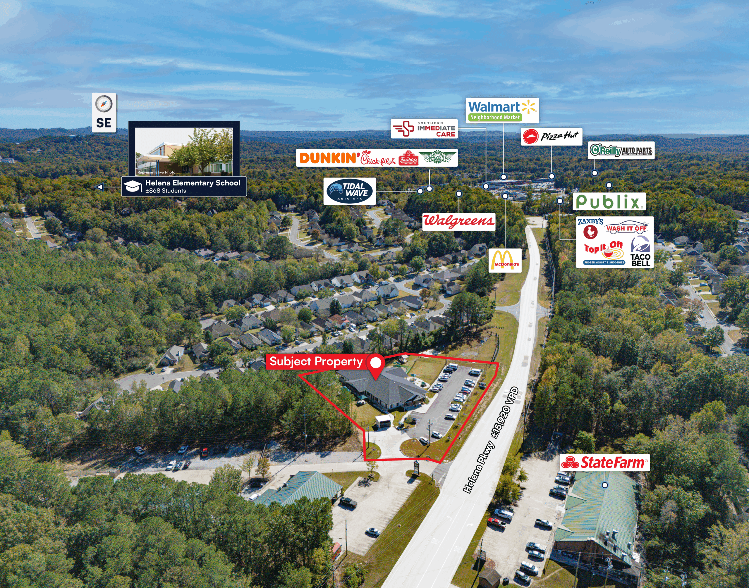 Located in a Growing Birmingham Submarket – Helena, AL Situated in Helena, one of Birmingham’s most desirable and fastest-growing suburbs, the property benefits from strong demographics, highly rated schools, and ongoing residential development. The city’s population has grown over 25% in the past decade, highlighting its appeal to young families and professionals.