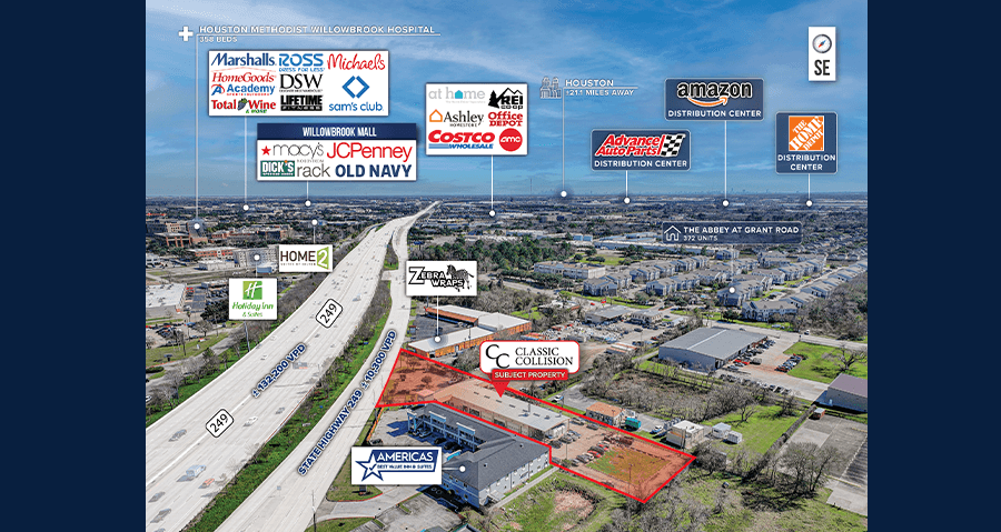 - PRIME HOUSTON LOCATION – Situated in the heart of Houston, TX, along the highly traveled Tomball Parkway (SH-249), providing excellent visibility and accessibility.