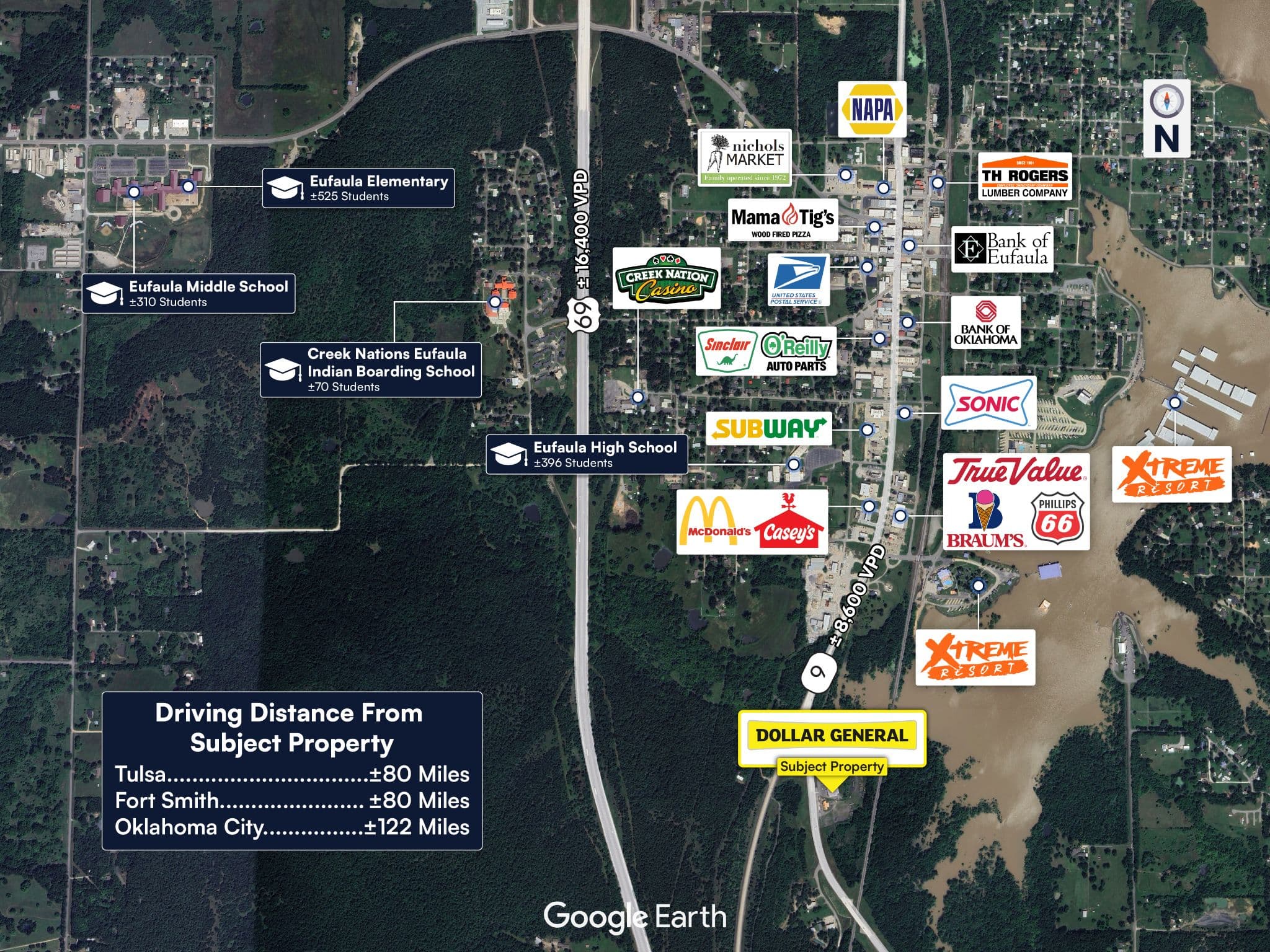 Located directly off Highway 9, the main thoroughfare of Eufaula