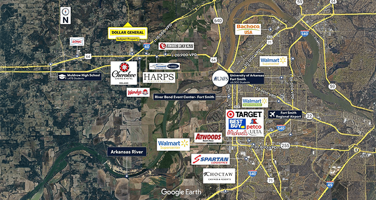 Situated approximately 7 miles from Fort Smith, Arkansas—the second-largest city in the state—with a regional population of ±90,507, supporting strong retail fundamentals and demand drivers.
