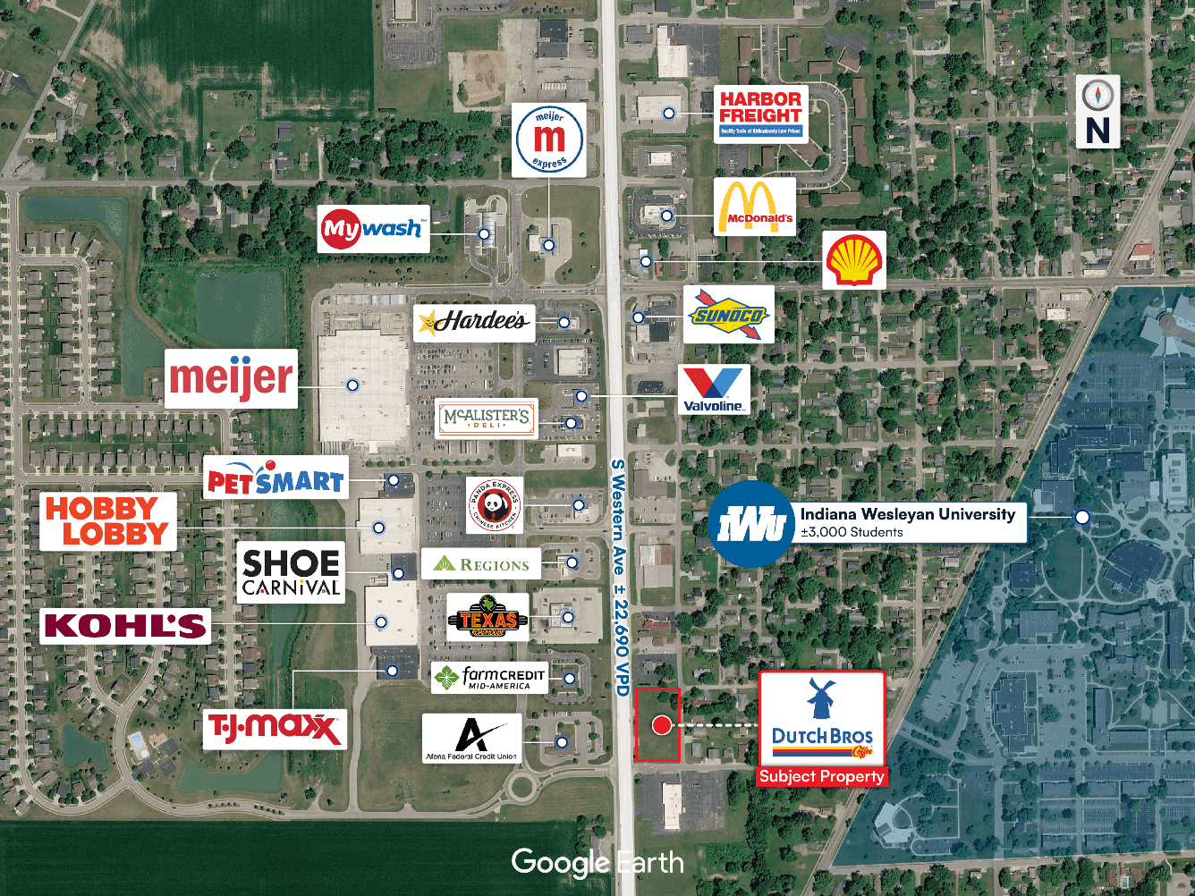 Immediate Proximity to Indiana Wesleyan University – The University has a total of ±14,500 students enrolled across its campuses, with ±3,000 enrolled at its main campus in Marion, which is walking distance to the Dutch Bros, supporting consistent demand from students, faculty, staff, and campus visitors. It is also less than a mile away from the University’s conference and events center, which brings an additional ±25,000 people in each summer.