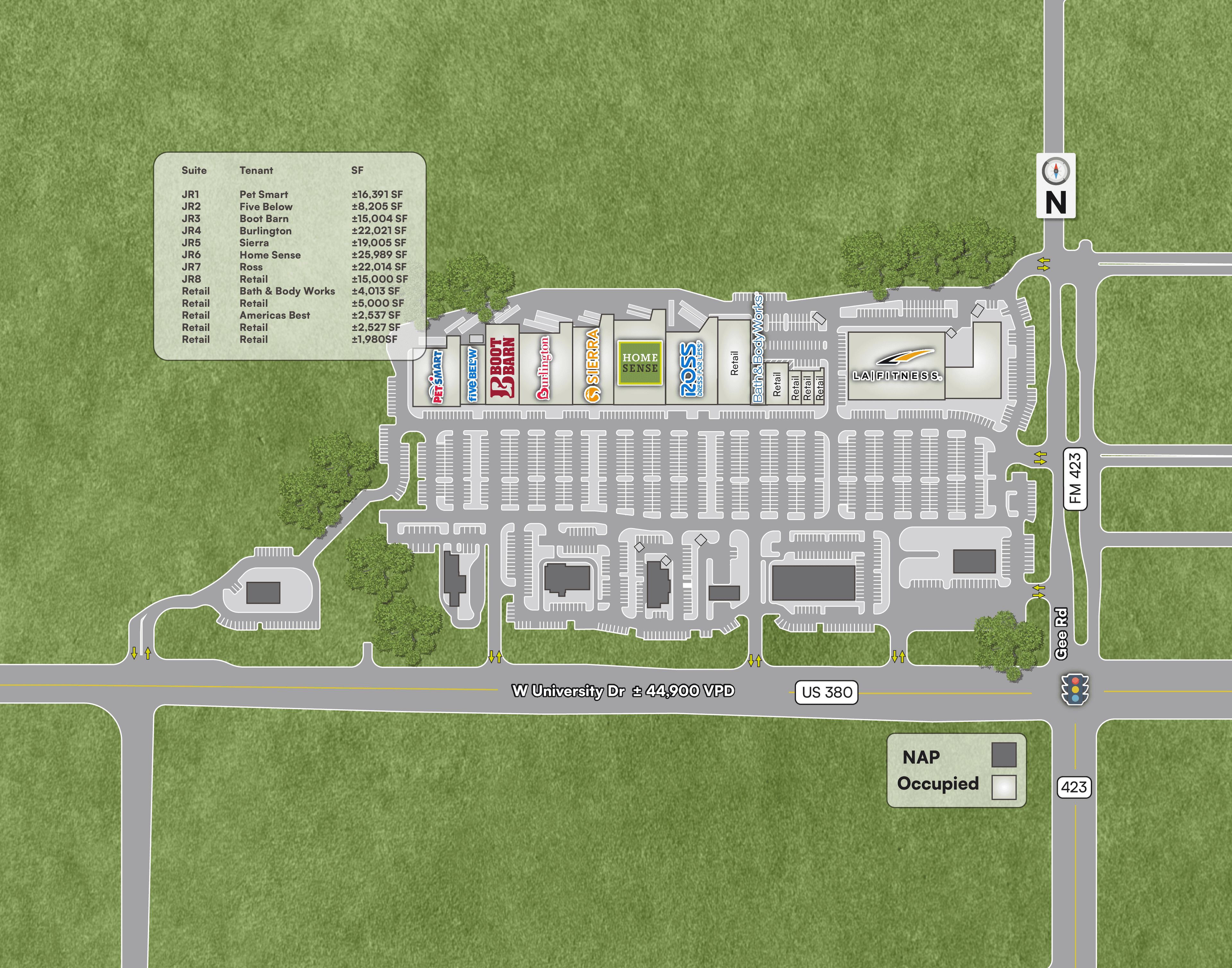 North Neighbor: Kroger Marketplace, The Home Depot, Cook Children’s Medical Center, and an LA Fitness.