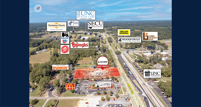 Strong Real Estate Fundamentals: The property benefits from its proximity to the University of North Carolina at Pembroke. With a captive audience of students, faculty, and visitors, the restaurant will enjoy consistent foot traffic year-round. The university enrolls over 8,300 students with a 22% enrollment increase in 2023. The university’s growth and expanding student body create a promising environment for long-term success, making this an ideal investment in a vibrant and university-centric market. Furthermore, the property sits on ±2.00 Acres and sees ±18,000 VPD.