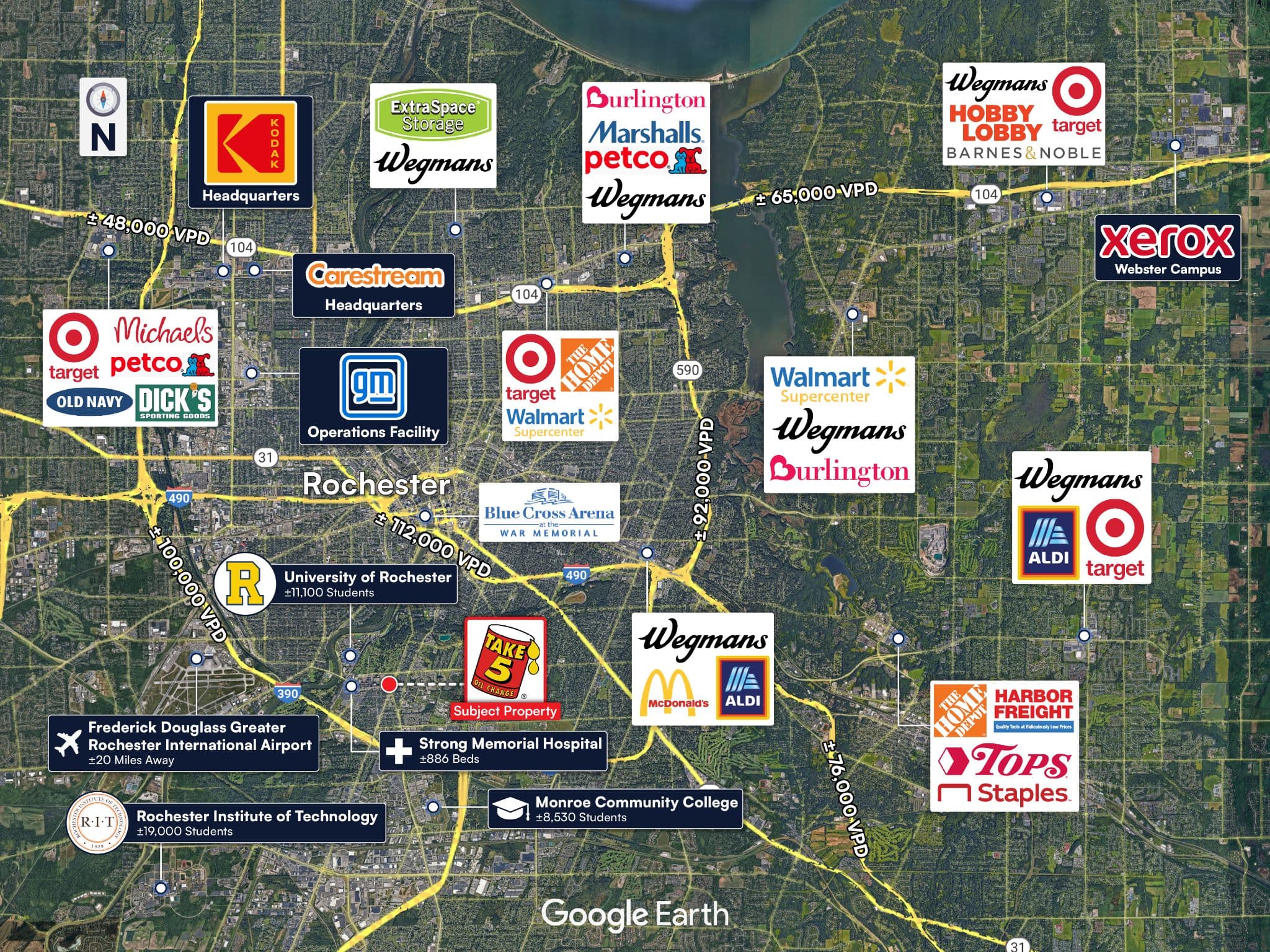 The subject property is within close proximity to The University of Rochester, Monroe Community College, and Rochester Institute of Technology (combined enrollment of ±36,600 students)