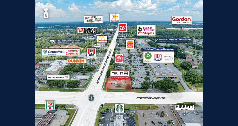 Prime Retail Corridor – Strategically positioned on a hard, signalized corner, adjacent to national retailers including Publix, Walmart Supercenter, Lowe’s Home Improvement, Bank of America, and Winn Dixie, driving consistent traffic to the area.